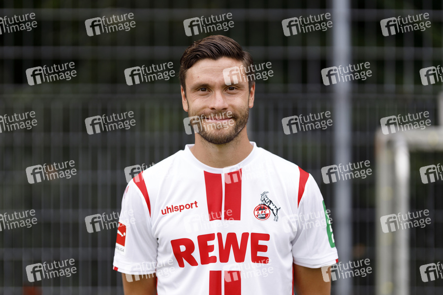 Jonas Hector beim Fototermin im Rahmen des Media Day des 1. FC Köln mit den neuen Trikots in der Saison 2020/2021 am Geißbockheim. Köln, 14.08.2020