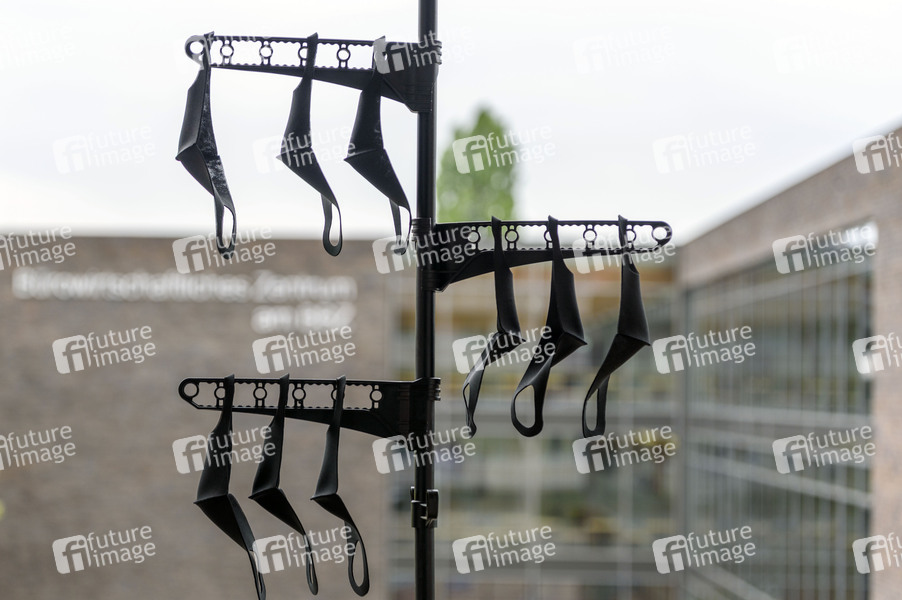 Gereinigte Mundschutze zum Trocknen aufgehängt