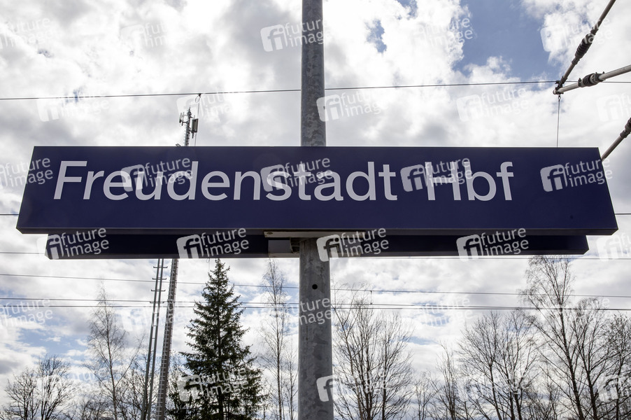 Freudenstadt Hauptbahnhof ist der wichtigste Bahnhof der Großen Kreisstadt Freudenstadt und ein überregional bedeutender Eisenbahnknotenpunkt im Nordschwarzwald. Freudenstadt, 12.04.2021