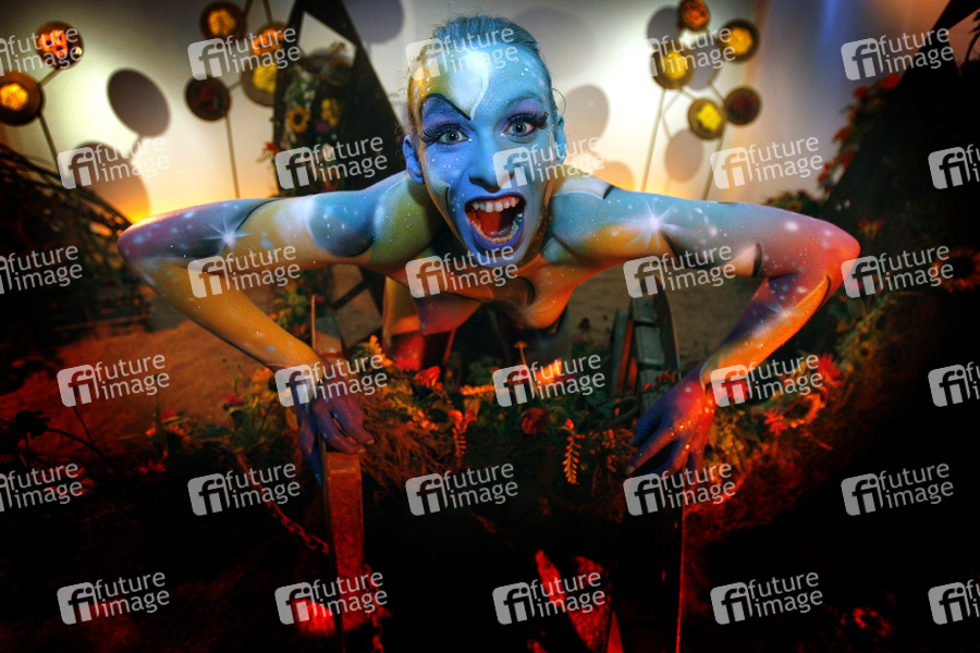 Bodypainting und Fotoshooting mit Model Sarah am Tag der offenen Tür der Meisterschule Justus-von-Liebig-Schule, Abteilung Floristik in Hannover-Ahlem. Künstler: Jörg Düsterwald