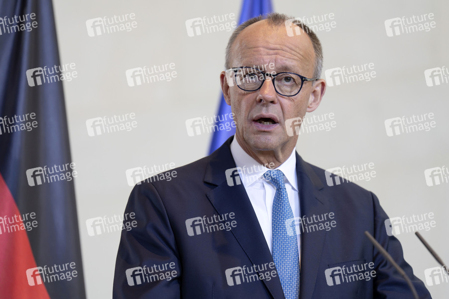 Friedrich Merz beim Empfang des Premierministers von Kanada mit militärischen Ehren zu einem gemeinsamen Gespräch mit anschließendem Pressestatement im Bundeskanzleramt. Berlin, 26.08.2025