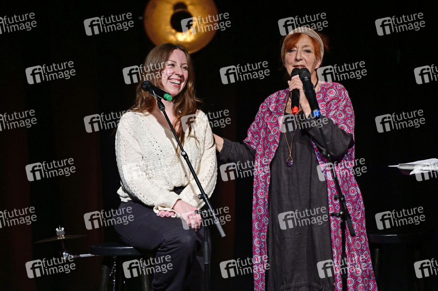 Ulrike Weidemüller und Dagmar Gelbke bei der musikalisch-satirischen Buchpremiere 'Ostsüppchen bleibt Ostsüppchen 3.0' mit Dagmar Gelbke und Gästen in der Wabe. Berlin, 06.11.2024
