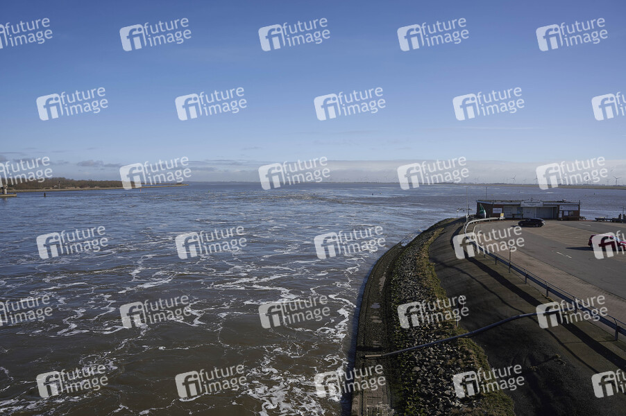 Das Eider-Sperrweg an der Mündung der Eider in die Nordsee. Wesselburenerkoog, 27.02.2021