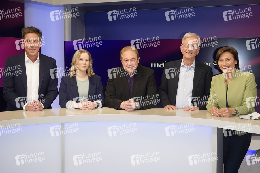 Markus Feldenkirchen, Julia Ruhs, Oliver Kalkofe, Heinrich von Pierer und Sandra Maischberger in der ARD-Talkshow 'maischberger' im Studio Berlin Adlershof. Berlin, 13.05.2025