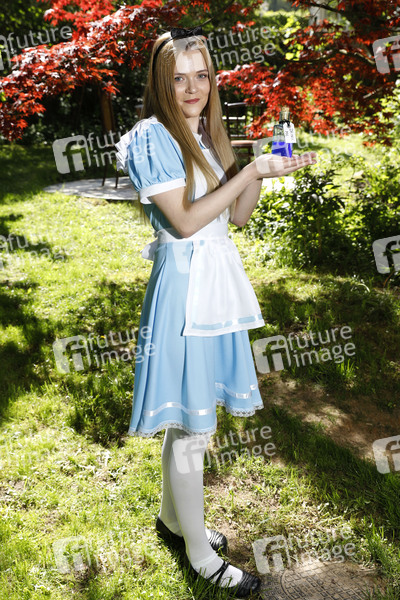 GEEK ART - Bodypainting and Transformaking: Alice im Wunderland Photoshooting mit Melina als Alice im Czarnecki-Garten. Hameln, 18.05.2023 - Ein Projekt des Fotografen Tschiponnique Skupin und des Bodypainters und Transformakers Enrico Lein