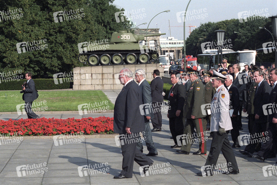 Poilitker, 1982-1998 der sechste Bundeskanzler der Bundesrepublik Deutschland, 1991-1999 der erste Präsident Russlands, Politik, Außenpolitk, Staatsbesuch, Verabschiedung, Besatzungszeit, Besatzungsmacht, Siegermacht, Armee, Soldaten, Uniform, Parade, Militär, Berlin-Brigade, Streitkräfte, Alliierte, Kbsw, Militärparade, Abrüstung, Zeitgeschichte, Zeitgeschehen