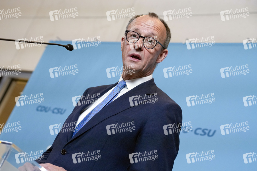 Friedrich Merz beim Pressestatement zur Fraktionssitzung der CDU/CSU-Bundestagsfraktion im Reichstagsgebäude. Berlin, 03.12.2024