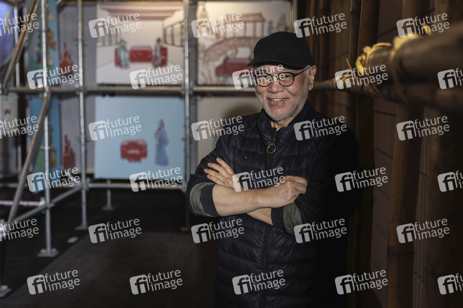 Danny Yung bei einem Photoshooting während der Proben zum Bühnenstück 'Startup of Wusheng'. Danny Yung ist Mitbegründer der Theatergruppe Zuni Icosahedron, die mit Auszeichnungen wie dem UNESCO Music Theatre NOW Award, dem Fukuoka-Preis für Kunst und Kultur und dem Verdienstkreuz der Bundesrepublik Deutschland für seine bahnbrechenden Beiträge zur interkulturellen Performance und zum Avantgarde-Theater geehrt wurde. Hongkong, 13.06.2024