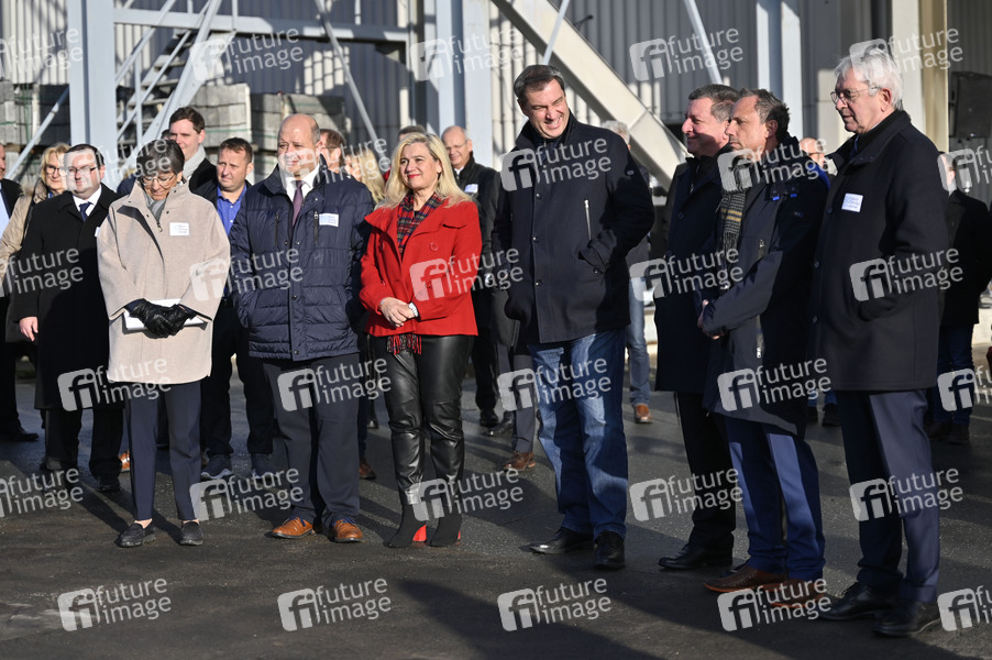 Markus Söder und Jubiläumsgäste bei der Jubiläumsveranstaltung '30 Jahre Main-Donau-Kanal' am Bamberger Hafen. Bamberg, 25.11.2022