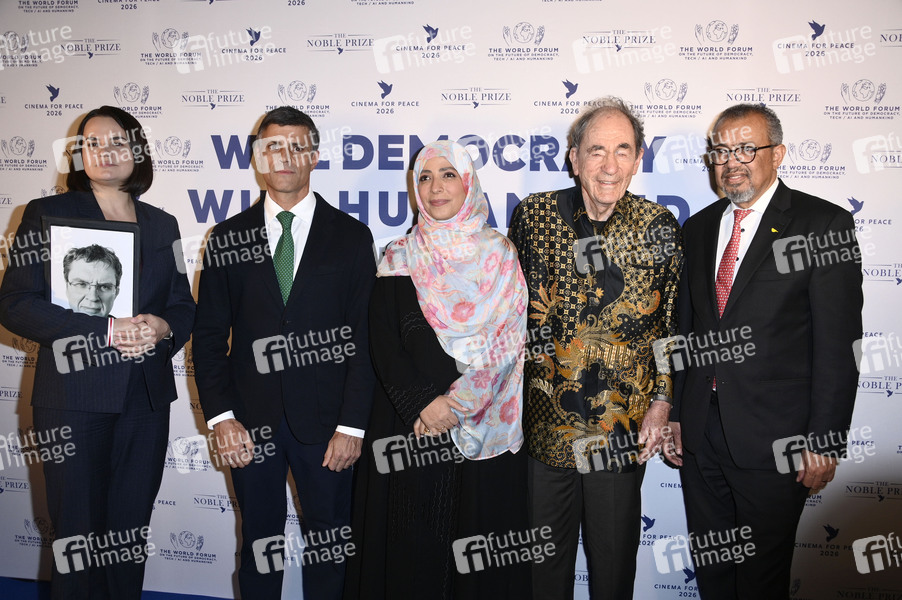 Sviatlana Tsikhanouskaya, Leopoldo Lopez, Tawakkol Karman, Albie Sachs und Tedros Adhanom Ghebreyesus bei der Cinema For Peace Gala 2026 im Hotel Adlon Kempinski. Berlin, 16.02.2026