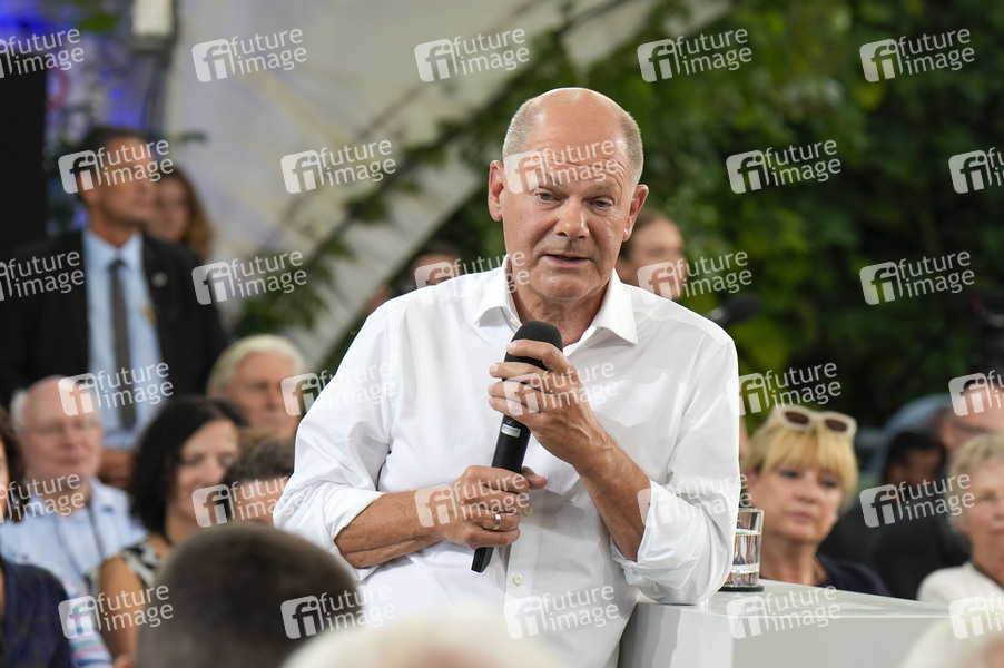 Olaf Scholz beim Kanzlergespräch mit Bürgern in der ufaFabrik. Berlin, 04.09.2024