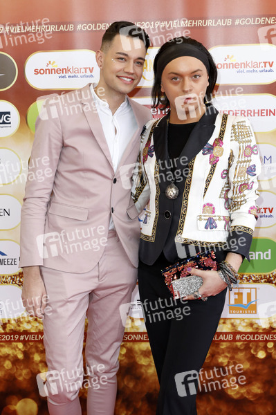 Julian F.M. Stoeckel mit Begleitung bei der Verleihung der Goldenen Sonne 2019 während der Sonnenklar.TV Gala im Wunderland Kalkar. Kalkar, 27.04.2019