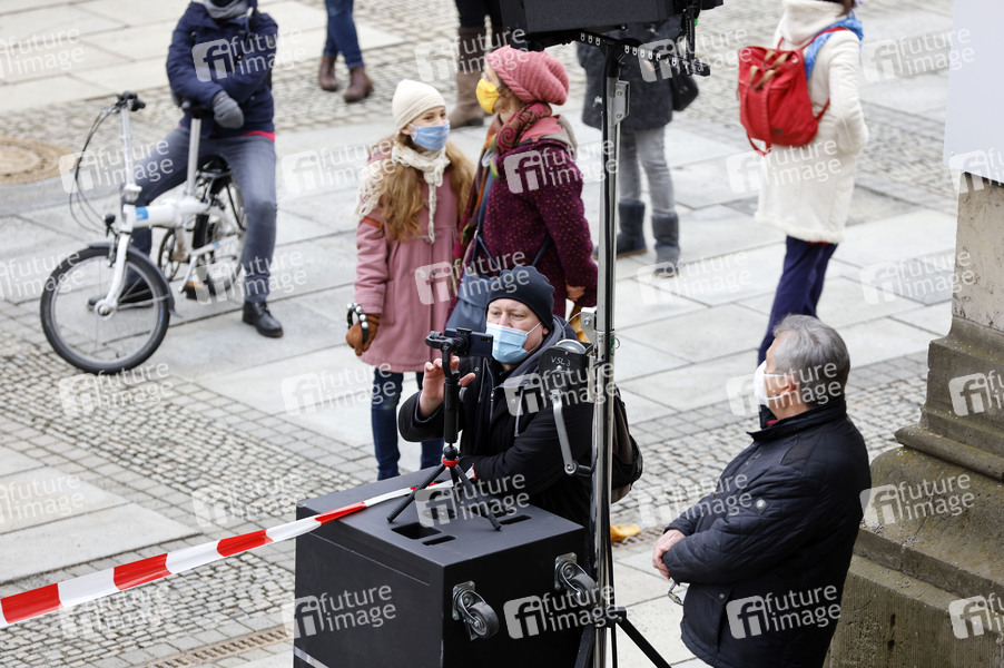 Unter dem Motto 'Gemeinsam in eine lebendige Zukunft' findet ein multikultureller Frauenmarsch vom Brandenburger Tor über das Rote Rathaus zum Gendarmenmarkt statt. Berlin, 28.02.2021