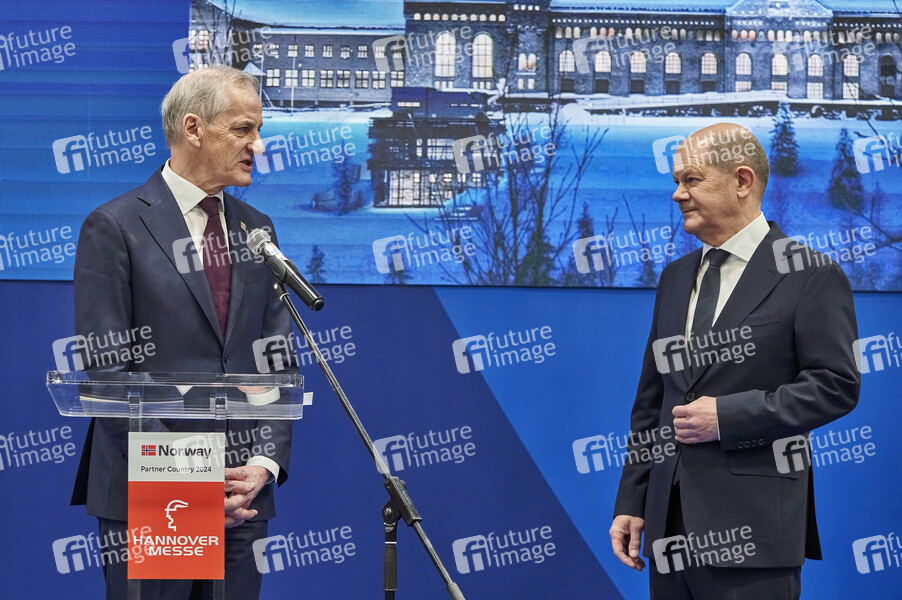 Deutsche Messe AG, Hannover Messe Industrie, Weltleitmesse der Industrie, Industriemesse, Industrieschau, Automatisierung, IT-Sicherheit, KI, Technologie, Wirtschaft, Ausstellung, Fair, Messe, Eröffnung, Opening, Leitmesse, Synergie und Kooperation, Wasserstoff & Brennstoffzellen, CO2-neutrale Produktion, Energizing a Sustainable Industry, Partnerland Norwegen, Jonas Gahr Støre, Jonas Gahr Störe, Politiker, Ap, Ministerpräsident von Norwegen, Bundeskanzler, SPD