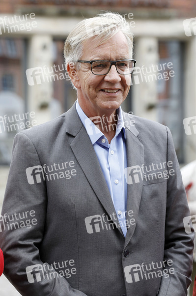 Dietmar Bartsch bei der Städtetour der Partei Die Linke zur Bundestagswahl 2021 mit dem Motto 'Sozial gerecht. Vor Ort. Jetzt!' auf dem Alten Markt. Stralsund, 28.08.2021