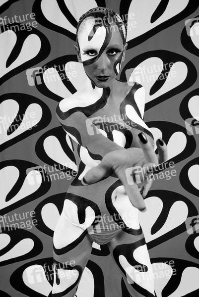 Bodypainting, Stoffdesign Anna Efverlund, Erotik, Frau, nackt, drinnen, weiblich, Muster, Chamäleon, erotic, woman, nude, indoor, female, chameleon