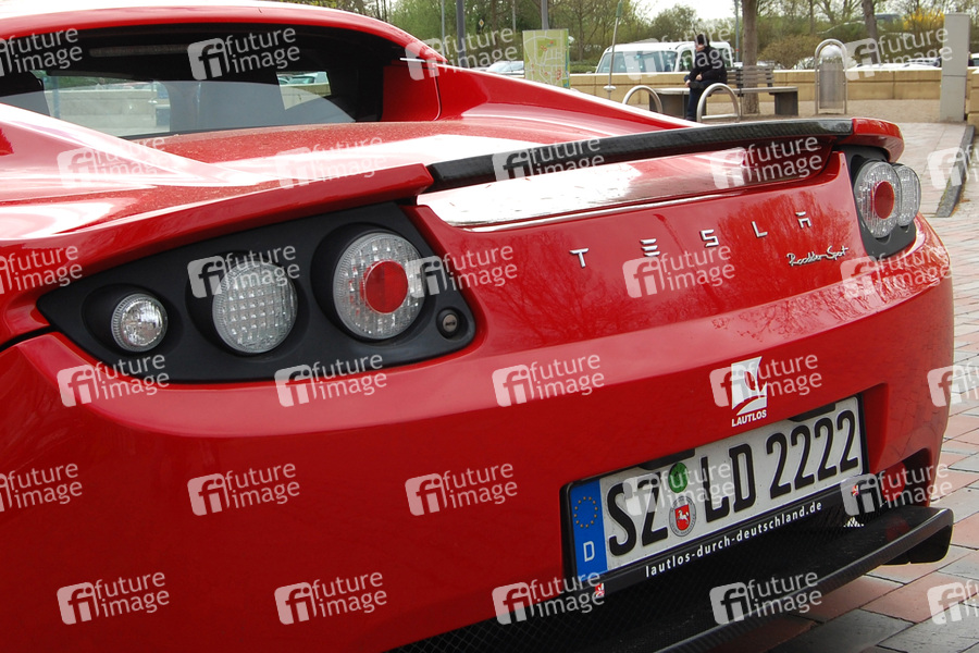 Der Tesla Roadstar, ein vollständig elekrisch betriebener Sportwagen, macht auf seiner Deutschlandtour Station in Neustadt am Rübenberge. Dieses erste Serienfahrzeug von Tesla Motors in Kalifornien beschleunigt auf 100 km/h in ca. 3,7 Sekunden. Der zweisitzige Sportwagen wird von einem 225 kW (288 PS) starken Elektromotor im Heck angetrieben. Der Energiebedarf beträgt im Durchschnitt 12,7 kWh/100 km, bezogen auf den Energiegehalt von Motorenbenzin entspricht dies 1,49 Liter auf 100 km. Reichweite rund 400 Kilometer