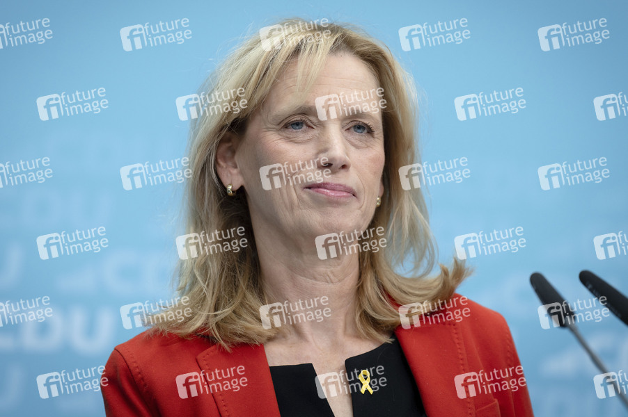 Karin Prien bei der Pressekonferenz der CDU im Anschluss an die Gremiensitzungen im Konrad-Adenauer-Haus. Berlin, 06.10.2025
