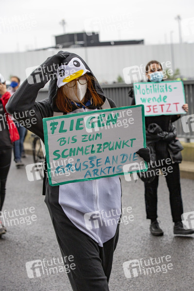 Protestaktionen von Mitgliedern des Bündnisses 'Am Boden bleiben' bei der Eröffnung des Flughafens Berlin-Brandenburg (BER). Schönefeld, 31.10.2020