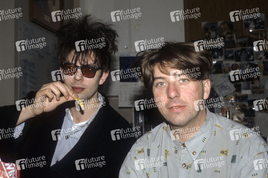 Ian McCulloch und Will Sergeant von Echo & the Bunnymen während eines Interviews bei WEA Records. London, 28.05.1987