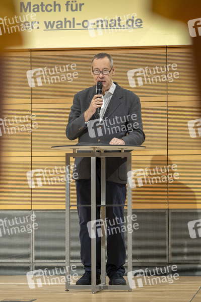 Thomas Krüger bei der Pressekonferenz zur Vorstellung des Wahl-O-Mat zur Bundestagswahl 2025 im dbb forum. Berlin, 06.02.2025