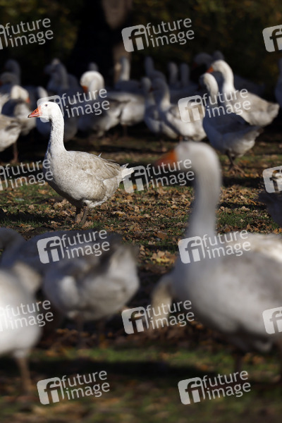 St. Martin, Martinsgans, Martinsgänse, Gans, Gänse, Mastgans, Mastgänse, Freiland, Freilandhaltung, Bio-Fleisch, artgerechte Haltung, Geflügel, Geflügelfleisch, Weihnachtsgans, Weihnachtsgänse, Gansbraten, Herde, Herdentrieb, Gänsemast, Fleisch, Fleischproduktion, Federn, Mästen, Weidemast, Zuchtgans, Zuchtgänse, Haustier, Haustiere, Symbolbild, Symbolfoto