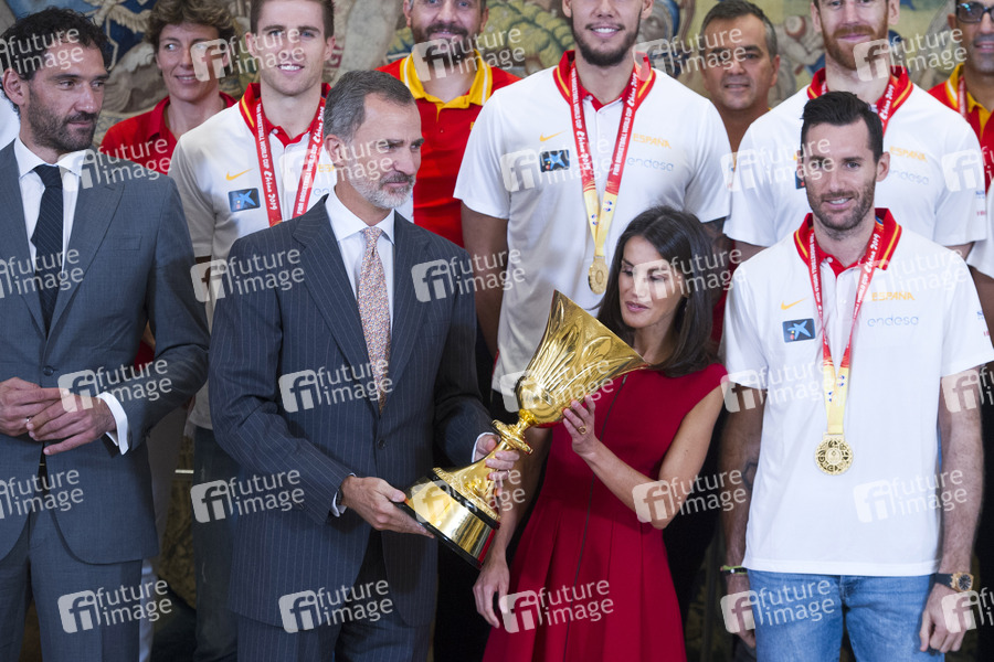 Adel, König von Spanien, Staatsoberhaupt, Fürst von Asturien, Fürst von Girona, Felipe de Borbón, Monarch, Königin von Spanien, Letizia Ortiz Rocasolano, Fürstin von Asturien, Royals, Basketball Team, Weltmeister, Basketball-Team, Sport, Sportler