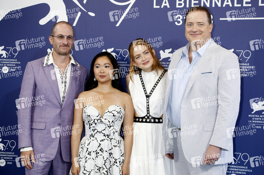 Darren Aronofsky, Hong Chau, Sadie Sink und Brendan Fraser beim Photocall zum Kinofilm 'The Whale' auf der Biennale di Venezia 2022 / 79. Internationale Filmfestspiele von Venedig im Palazzo del Casino. Venedig, 04.09.2022