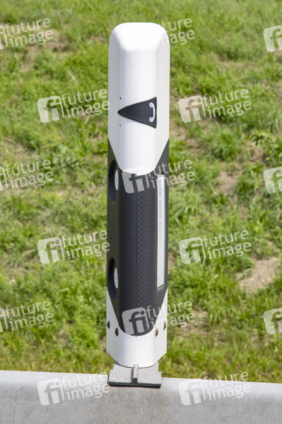 Die schwarz-weißen einheitlichen Pfosten am Straßenrand markieren den Straßenverlauf und zeigen auf größeren Straßen mit schwarzen Pfeilen die Richtung zur nächsten Notrufsäule. (Symbolfoto, Themenfoto) Rottenburg am Neckar, 31.08.2021
