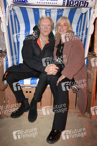 Wolfgang Lippert mit Ehefrau Gesine Lippert beim offiziellen Opening der Baltic Lights 2024 mit Fackellauf und Lagerfeuer an der Alex Strandbar. Heringsdorf, 01.03.2024