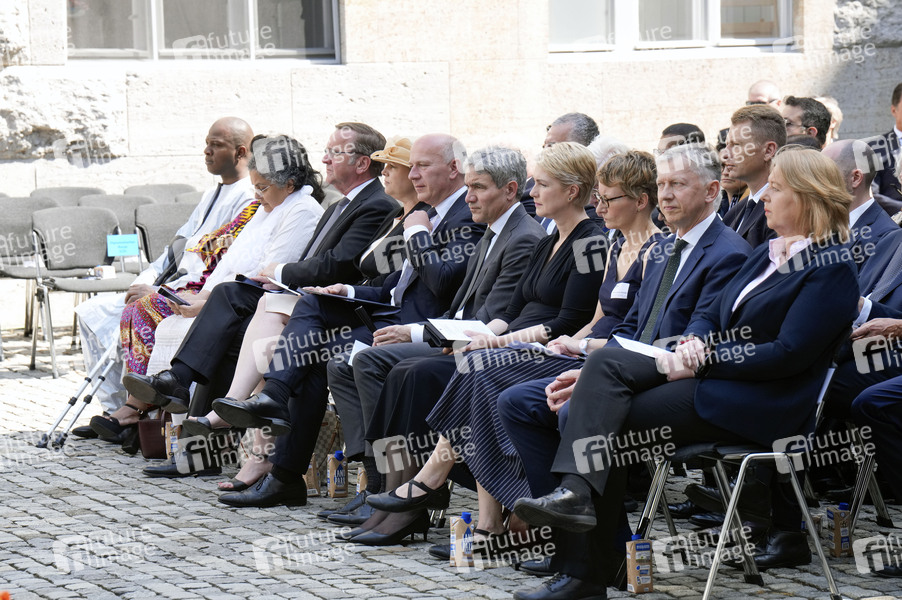 Boris Pistorius, Cornelia Seibeld, Kai Wegner, Stephan Harbarth, Manuela Schwesig, Sandra von Steinau-Steinrück, Robert von Steinau-Steinrück und Bärbel Bas bei der Gedenkveranstaltung zum 80. Jahrestag des Aufstands gegen Nationalsozialistische Gewaltherrschaft mit Kranzniederlegung auf dem Ehrenhof des Bendlerblocks.Berlin, 20.07.2024