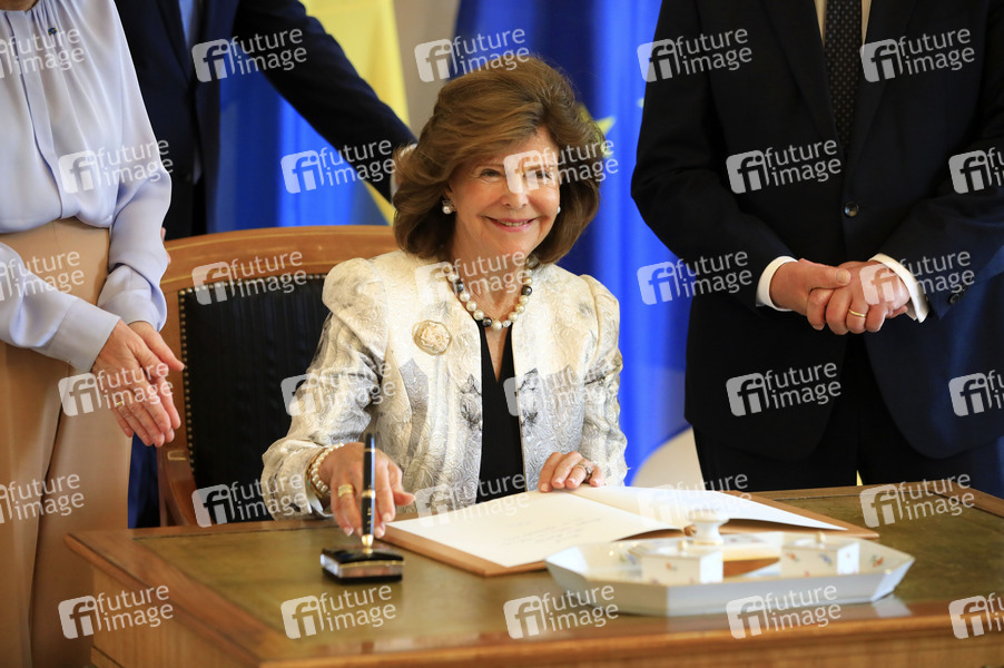 Königin Silvia von Schweden beim Eintrag in das Gästebuch im Schloss Bellevue. Berlin, 18.09.2024