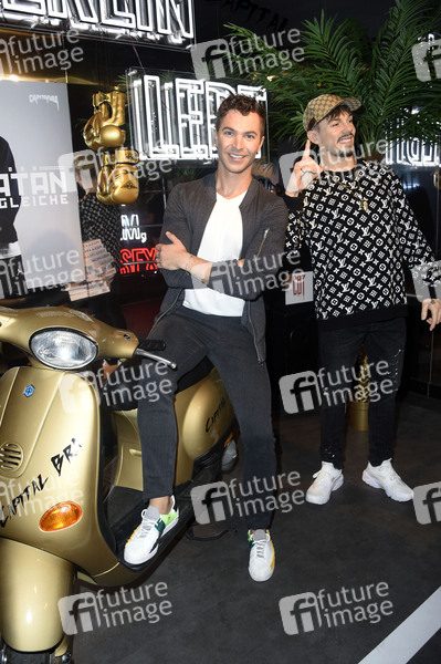 Julian David mit Capital Bra Wachsfigur bei der Eröffnung der Ausstellung 'Berlin 100' im Madame Tussauds. Berlin, 15.07.2021