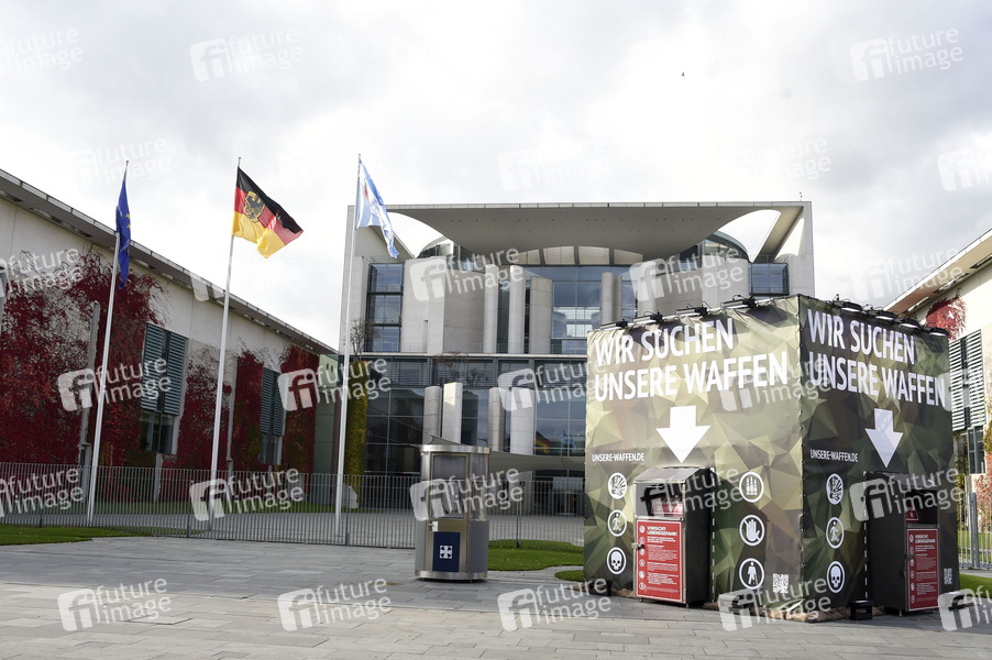 Kanzleramt, Kunstaktion, Waffen, Verlust, Rechtsextermismus, KSK, Kampfmittelräumung, Verteidigung, Verteidigungsministerium, Wiederfinden, Abgabe, Aktivisten, Demo, Demonstration, Kunst, Armee, Bundeswehr, Waffensysteme, Kundgebung, Protest
