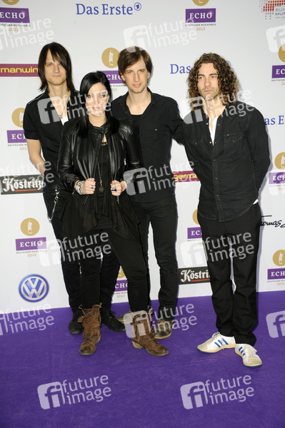 Thomas Stolle, Johannes Stolee, Stefanie Kloss und Andreas Novak (Silbermond) bei der 22. Verleihung vom Musikpreis ECHO 2013 im Palais am Funkturm. Berlin, 21.03.2013