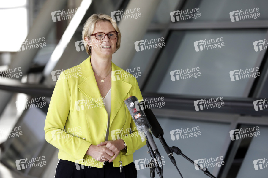 Anja Karliczek bei einem Statement am Rande der 234. Sitzung des Deutschen Bundestages im Reichstagsgebäude. Berlin, 11.06.2021