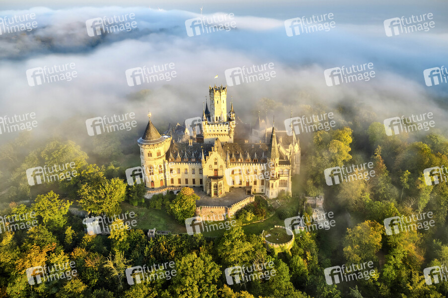 Schloss Marienburg auf dem Marienberg im Morgennebel. (Bildfreigabe durch Pressesprecherin Annette Langhorst vom Schloss Marienburg) Nordstemmen, 09.10.2021