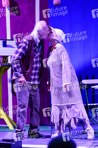 Achim Wolff und Rita Feldmeier bei der Premiere des Theaterstücks 'Maxe Baumann - Ferien ohne Ende' während der Beelitzer Festspiele 2025 auf der Freilichtbühne. Beelitz, 14.08.2025