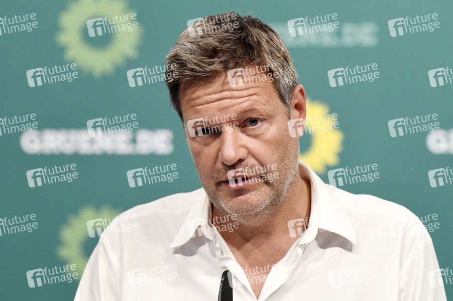 Robert Habeck bei einer Pressekonferenz nach Beratungen des Parteirats Bündnis 90/Die Grünen zum Umgang mit dem Parteimitglied Boris Palmer (Oberbürgermeister Tübingen) in der Heinrich-Böll-Stiftung. Berlin, 14.06.2021