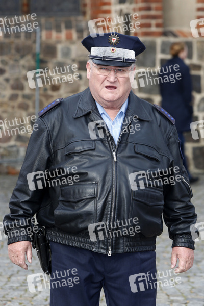 Horst Krause beim Fototermin am Set des ARD-Krimis 'Polizeiruf 110 - Käfer und Prinzessin' (AT) am Rathaus Beelitz. Beelitz, 01.11.2013