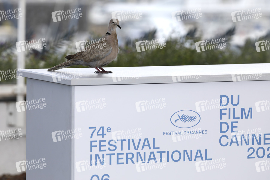 Eine Taube beim Photocall zum Kinofilm 'France' auf dem Festival de Cannes 2021 / 74. Internationale Filmfestspiele von Cannes am Palais des Festivals. Cannes, 16.07.2021
