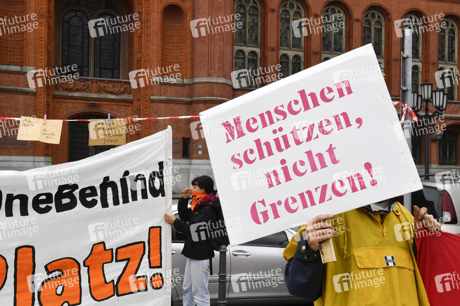 Demo, Demonstration, Demonstranten, Politik, Protest, Aktion, Evakuierung, Räumung, Flüchtlingslager, Menschenrechte, Demo, Rotes Rathaus, Initiative Seebrücke, Flüchtlingspolitik, Asyldebatte, Asylpolitik, Einwanderung, Zuwanderung, Asylrecht, Asylgesetz