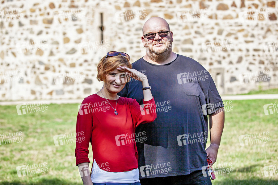 Katja Kipping und Mirko Schulze bei der Veranstaltung 'Rotes Wohnzimmer mit Brunch' im Rahmen einer Wahlkampfveranstaltung der Partei Die Linke zur Landtagswahl in Sachsen 2019 auf dem Theatervorplatz. Görlitz, 23.08.2019
