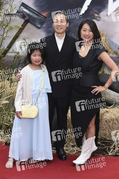Lee Isaac Chung mit Ehefrau Valerie Chung und Tochter bei der Premiere des Kinofilms 'Twisters' im Cineworld Leicester Square. London, 08.07.2024
