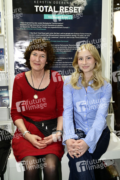 Kerstin Doerenbruch und Ivy Josefine Ullrich bei der Buch- und Film-Präsentation von 'Total Reset' am Messestand des Noel Verlag in Halle 2 auf der Leipziger Buchmesse 2025 auf dem Messegelände. Leipzig, 29.03.2025