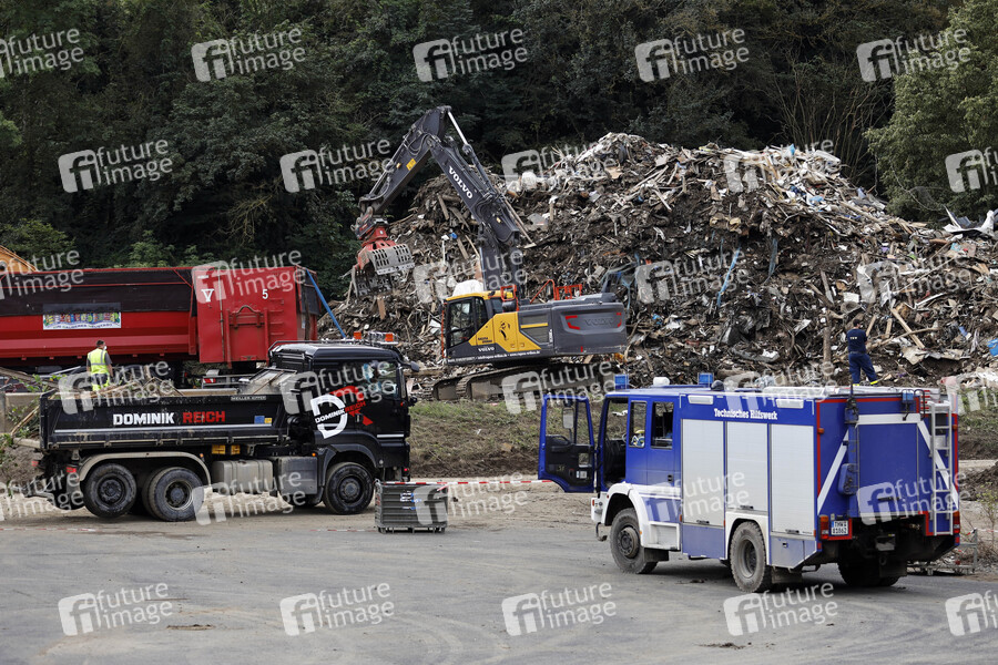 Nach dem Jahrhunderthochwasser in der Eifel durch heftige Regenfälle und Dauerregen mit Überschwemmungen und Überflutungen haben die Aufräumarbeiten im Ahrtal große Fortschritte gemacht. Einheiten von Polizei, THW, Bundeswehr und Feuerwehr mitsamt vielen freiwilligen Helfern haben Straßen geräumt, Schutt und Schlamm entfernt und die Menschen versorgt. Der Wiederaufbau wird trotzdem Jahre dauern. Im Bild Flutschäden in der Ortschaft Mayschoß, in der die Flut viele Häuser zerstörte, 08.08.2021
