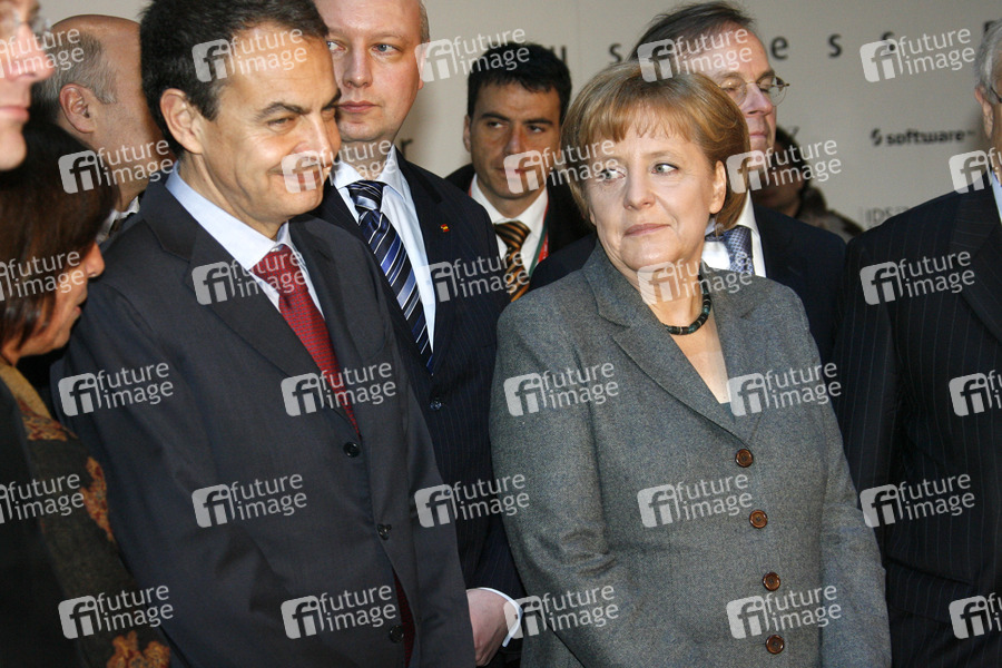 Eröffnungsrundgang von Bundeskanzlerin Merkel und Spaniens Ministerpräsident Zapatero auf der CeBIT 2010 (Centrum der Büro- und Informationstechnik), der weltgrößten Messe für Informations- und Computertechnik auf dem Messegelände in Hannover.