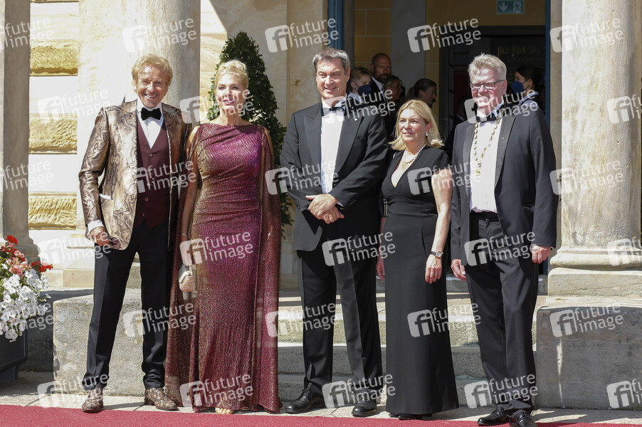 Thomas Gottschalk, Karina Mroß, Markus Söder, Stefanie Hellbach und Thomas Ebersberger bei der Eröffnung der Richard-Wagner-Festspiele 2022 mit der Neuinszenierung von Richard Wagners 'Tristan und Isolde' im Bayreuther Festspielhaus. Bayreuth, 25.07.2022