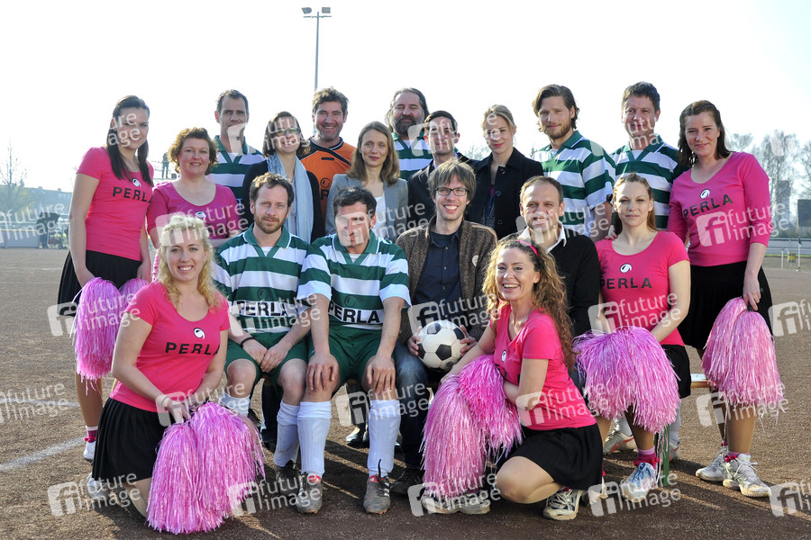 Photocall am Set des Kinofilms 'Abseitsfalle' auf dem Sportplatz in Bergheim-Niederaußem