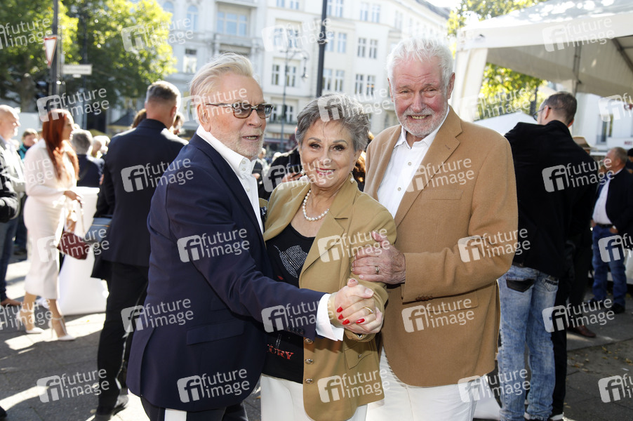 Rene Koch, Dagmar Frederic und Klaus Lenk bei der offiziellen Einweihung des Harald-Juhnke-Platzes am Kurfürstendamm. Berlin, 29.09.2025